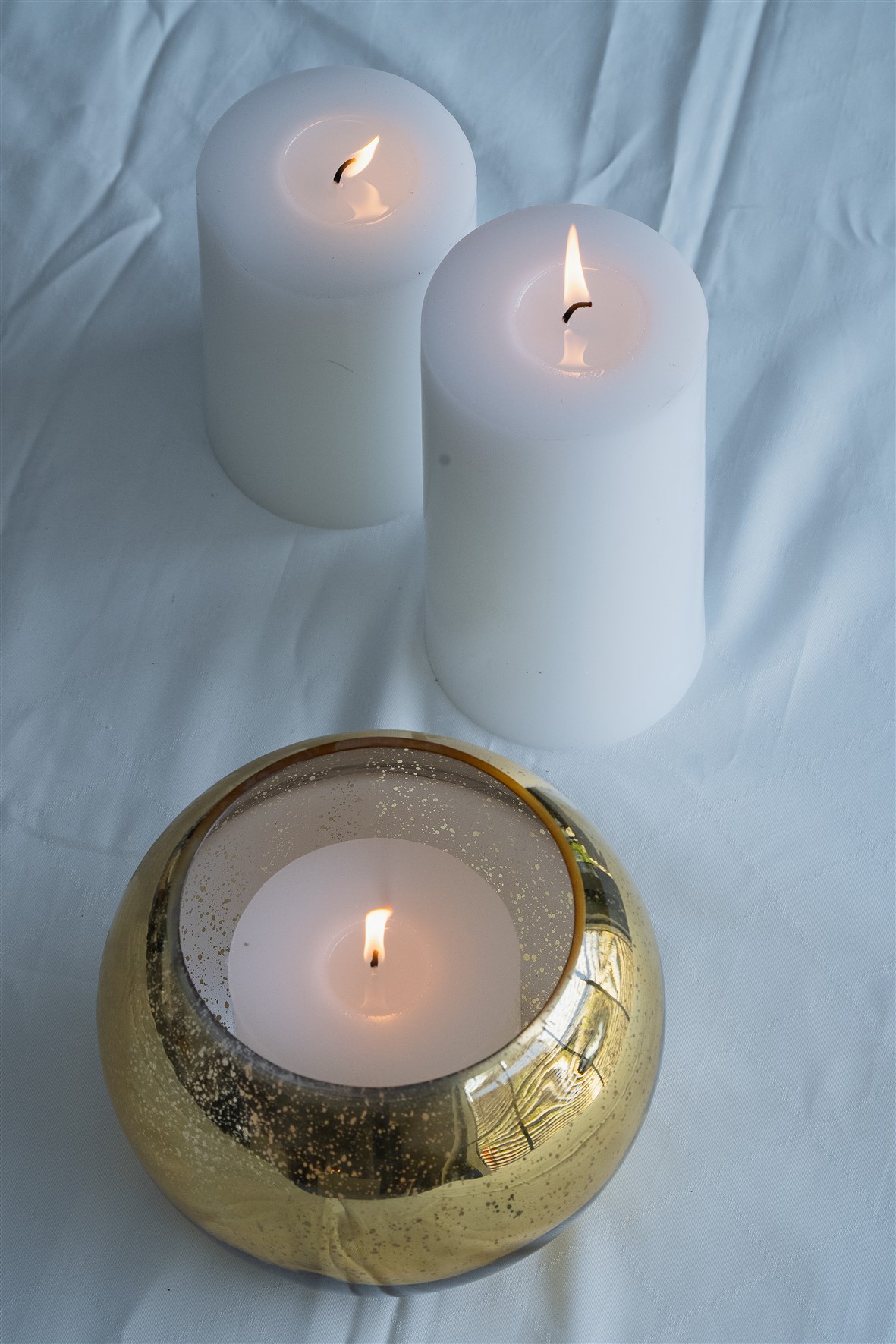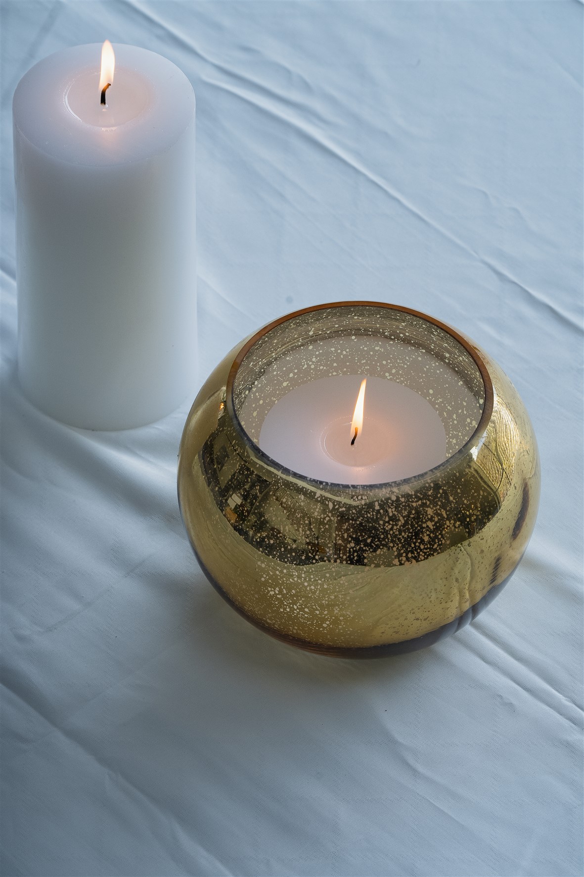 כלי לנר מהמם לעיצוב שולחן , אור הנר נראה מבעד לזכוכית