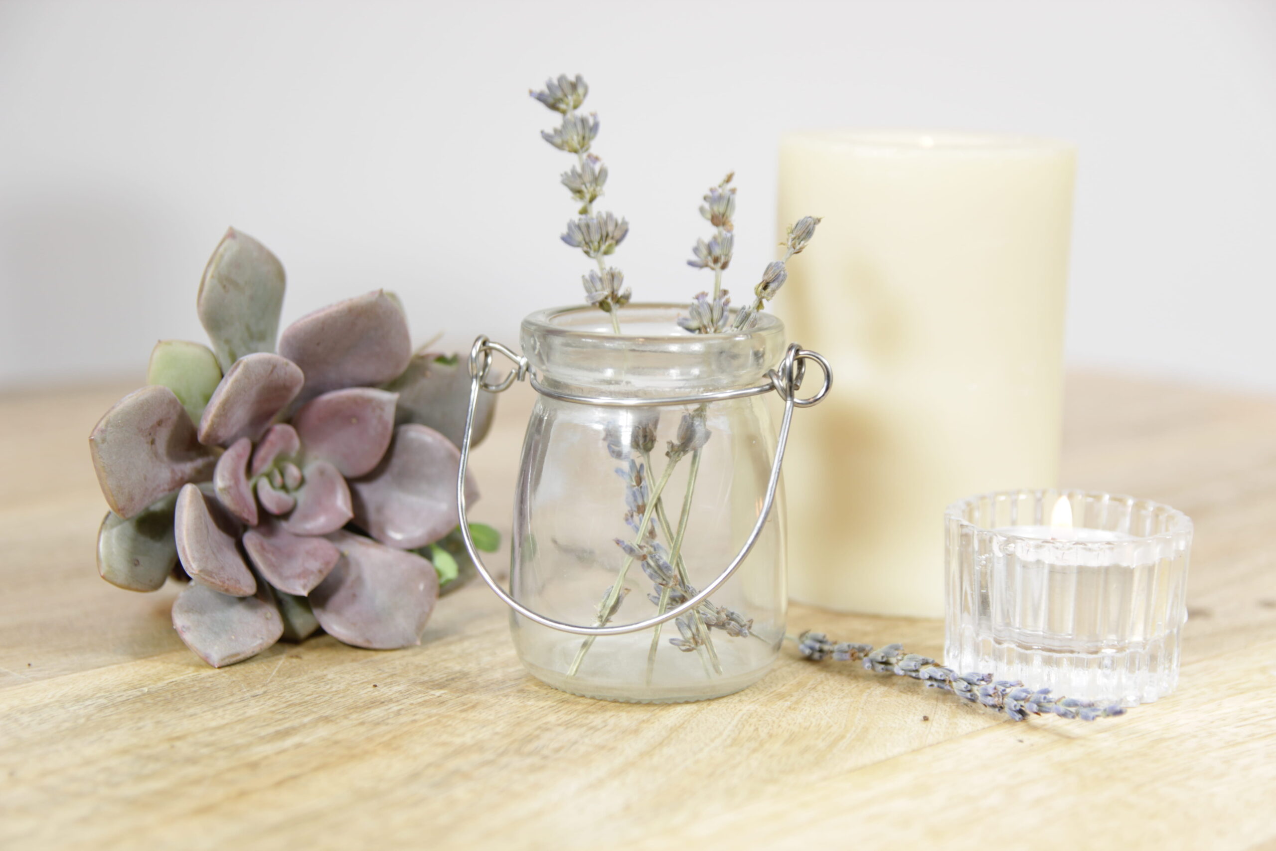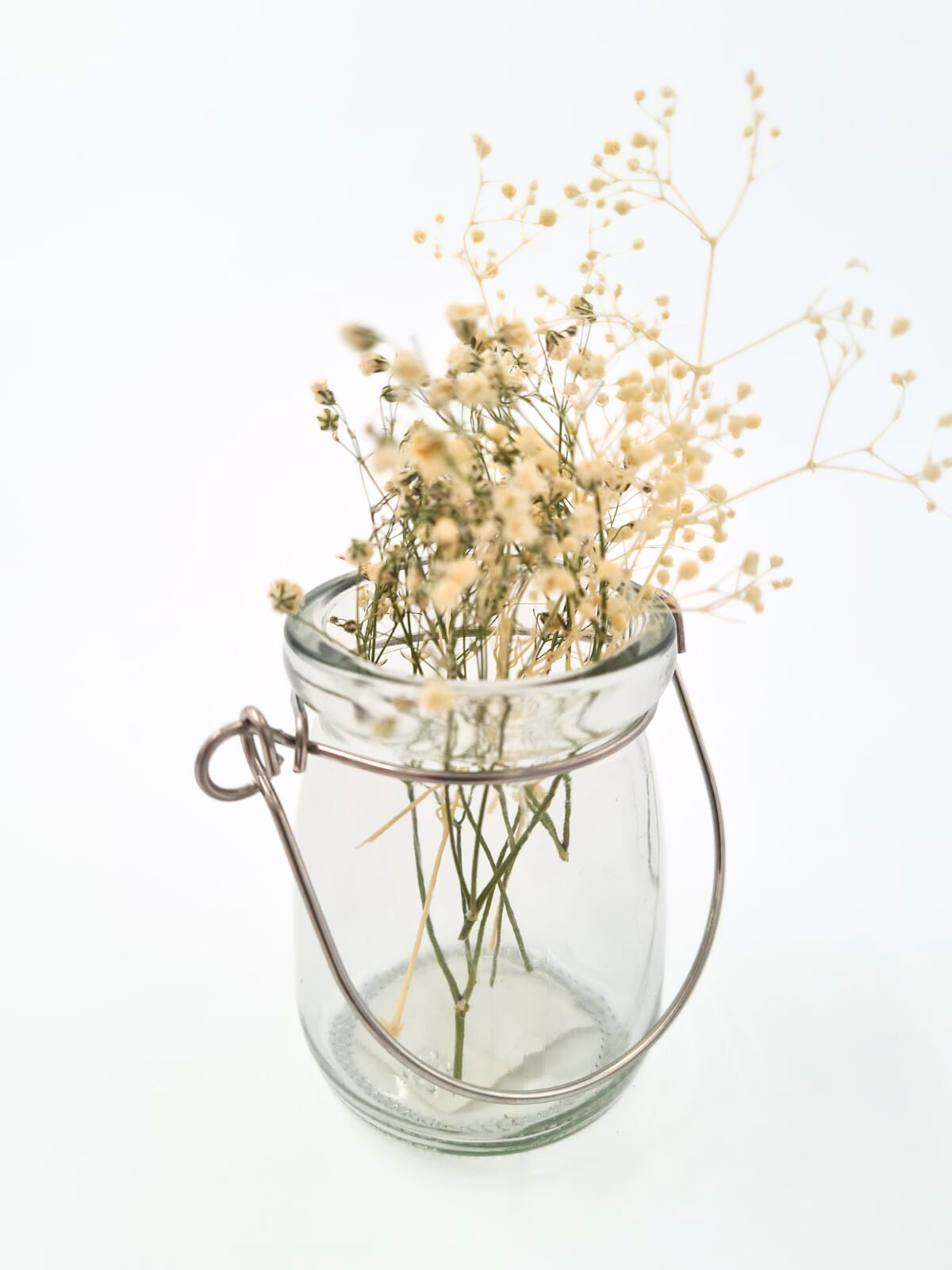 כלי זכוכית קטן ומהמם לעיצוב שולחן עם זר יבש או טרי