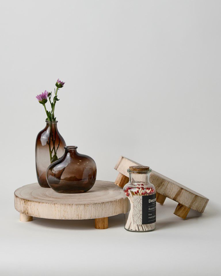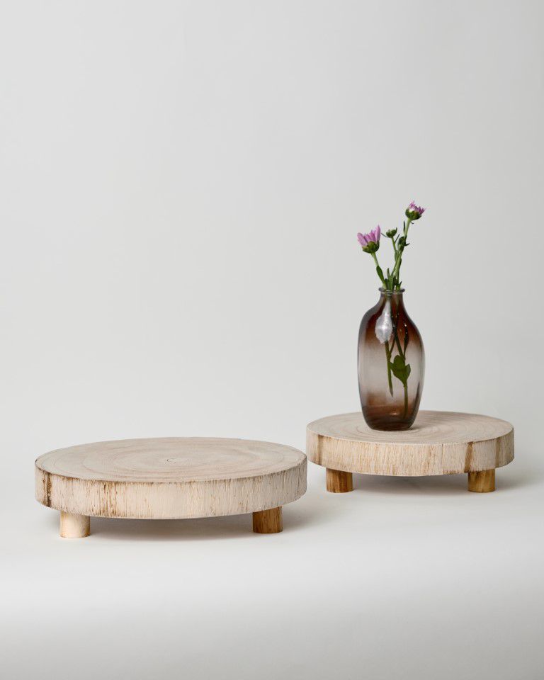 מגש קלאסי מעץ טבעי עגול על רגליים
