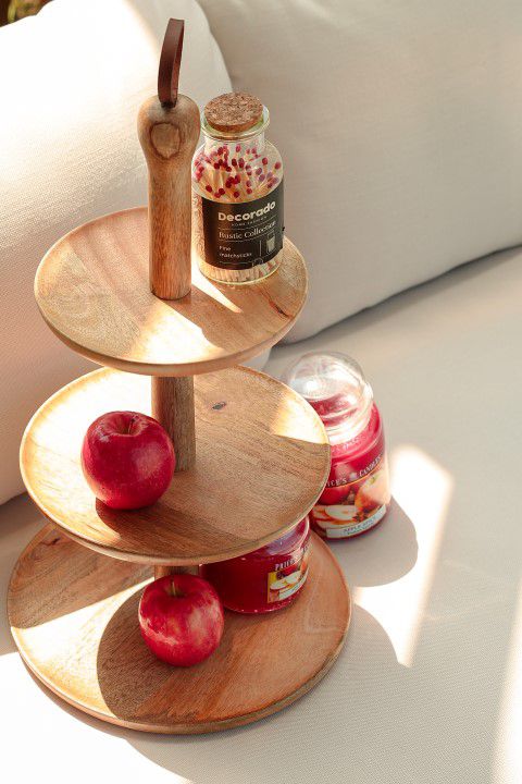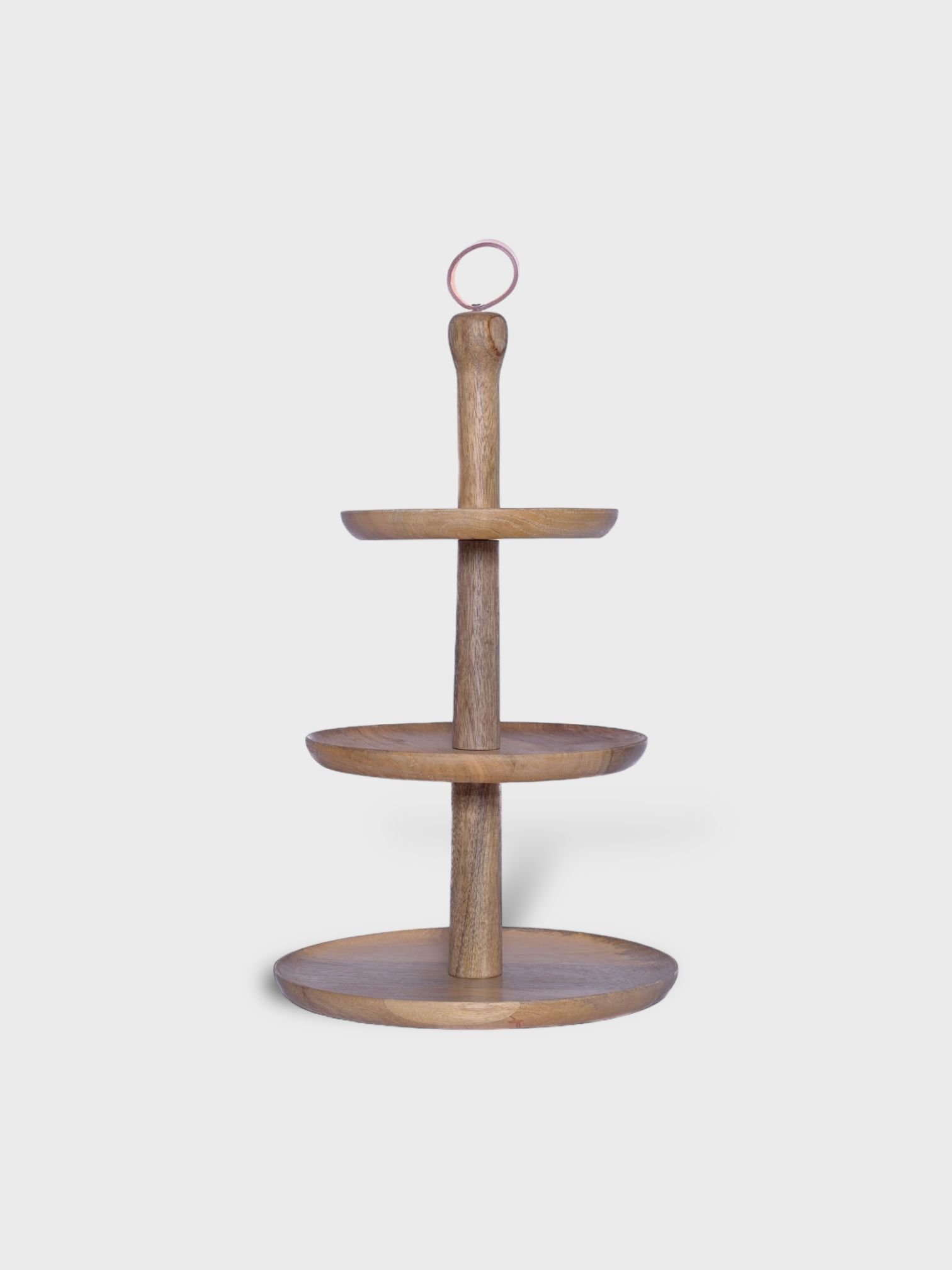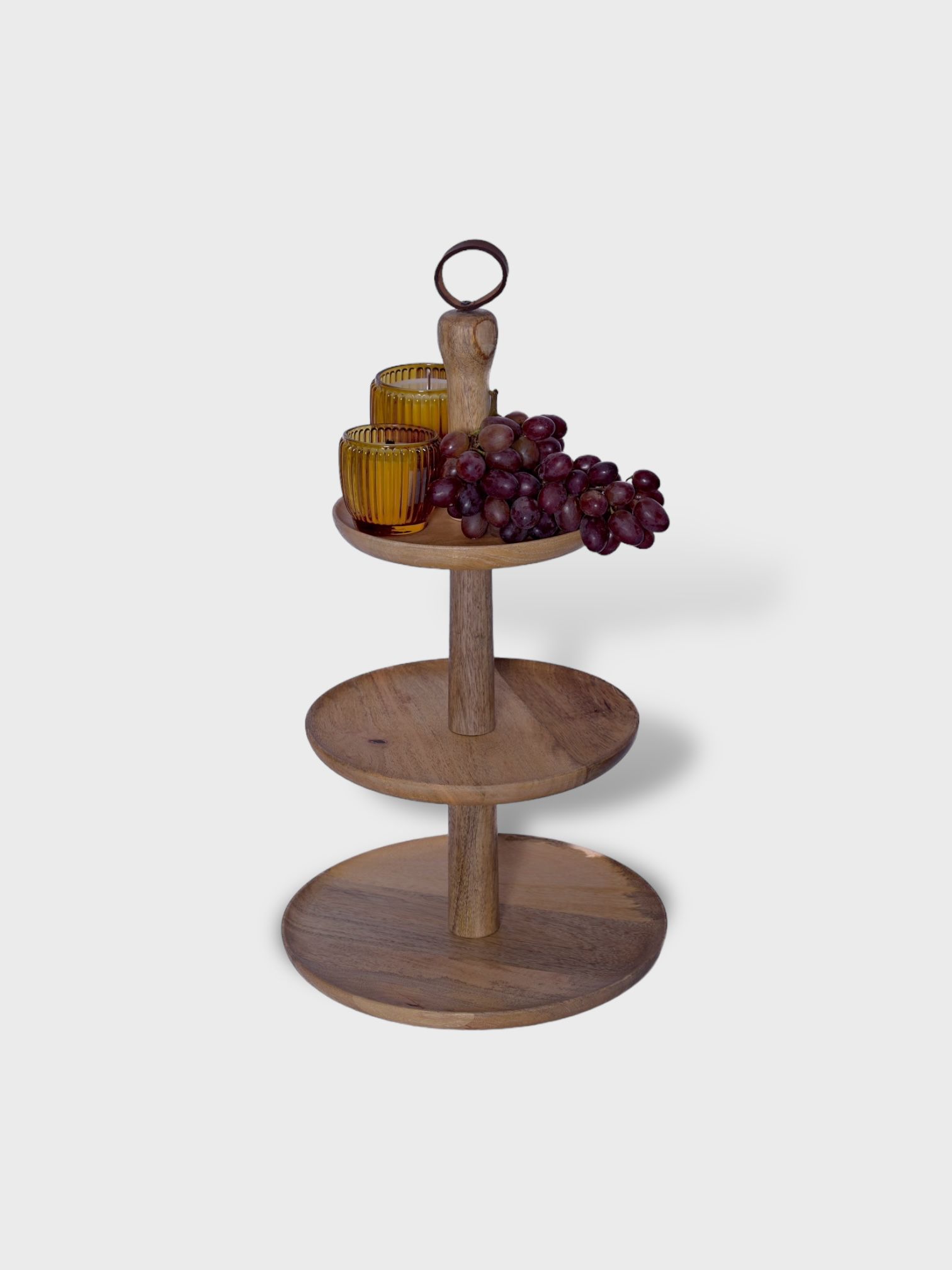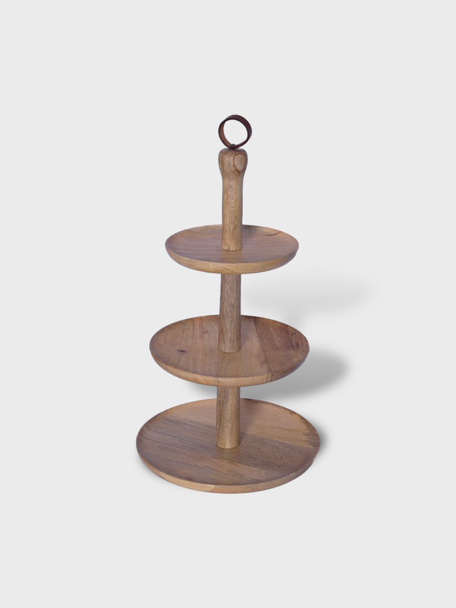 מגש מעץ מנגו שלוש קומות , ידית אחיזה עליונה ממתכת
