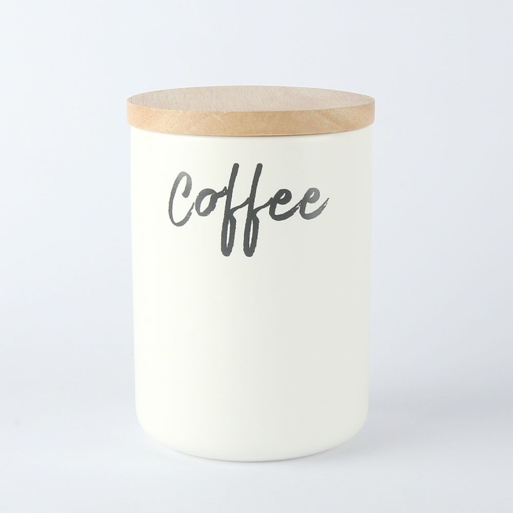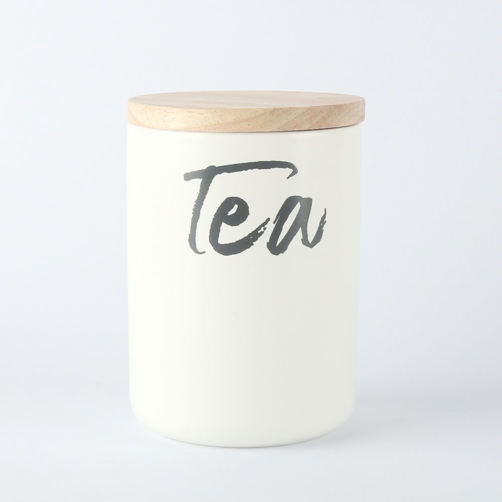 סט צנצנות חרס לתה קפה וסוכר עם מכסה עץ