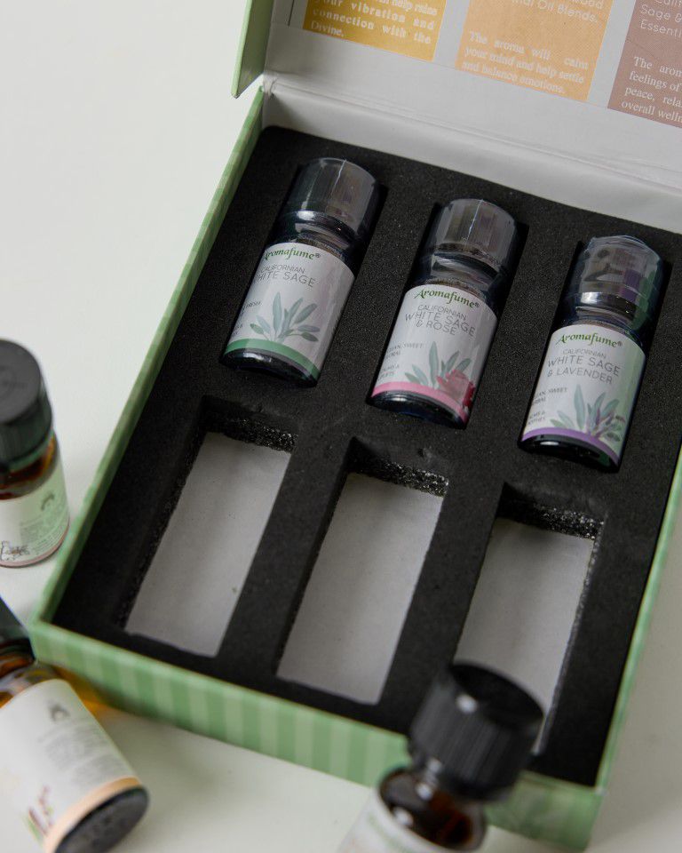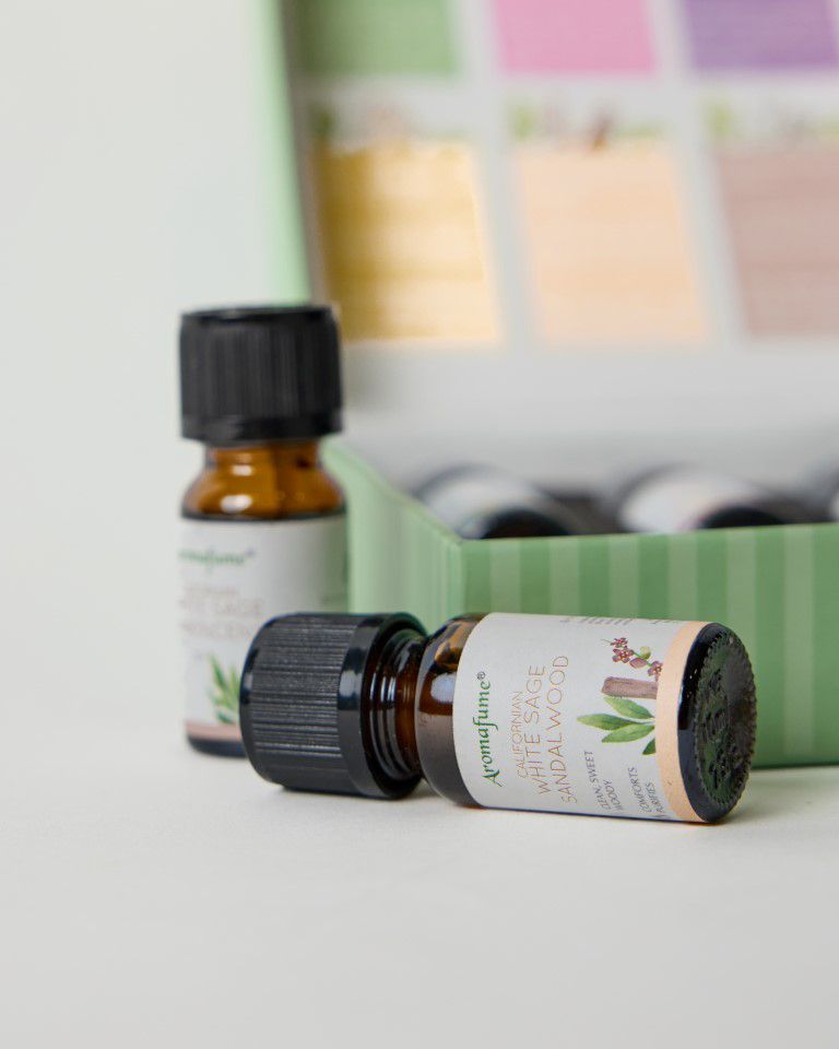 מארז 6 בקבוקים (10 מיל) של שמנים אתריים בארומה מרגיעה של המרווה הלבנה עם שילובים נוספים, לשימוש במבער.