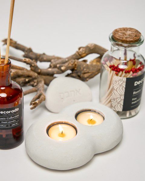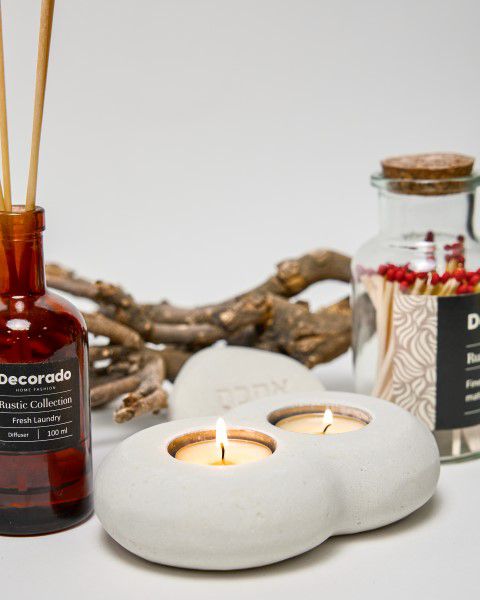 פמוט זוגי קלאסי לטי לייט מבטון לבן