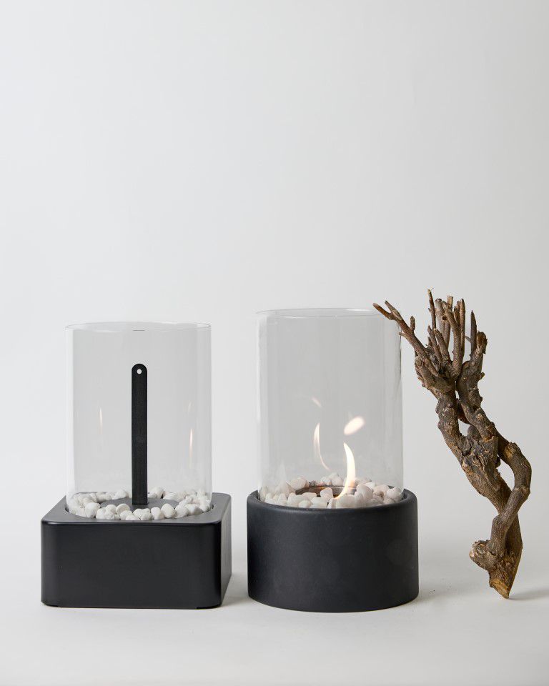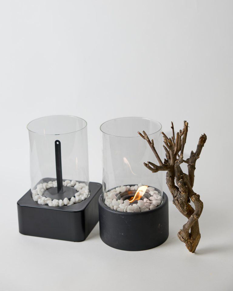 בסיס ריבועי רחב, אבנים לדקורציה וזכוכית להגנה על האש