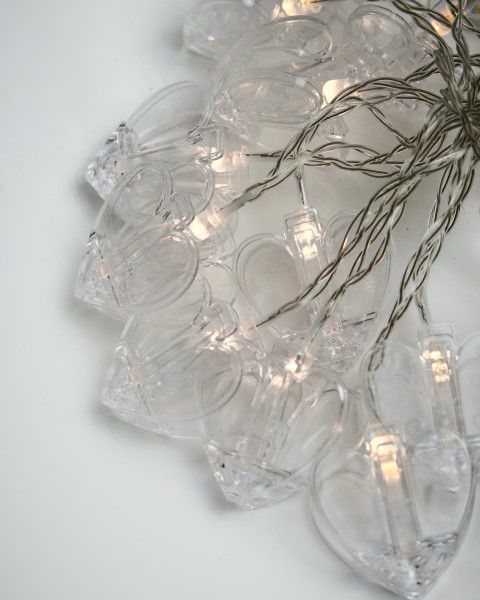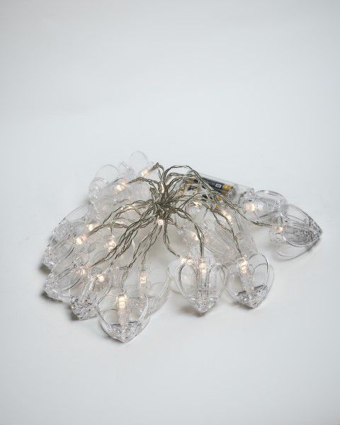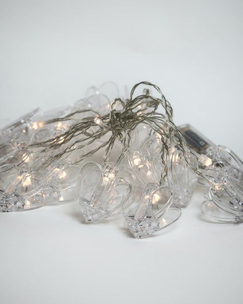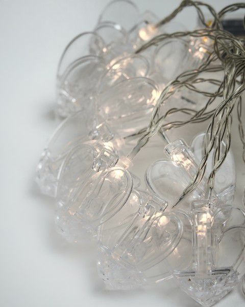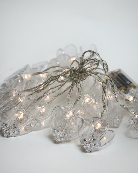 שרשרת נורות בצורת לב עם קליפסים על בטריות (לא כלולות) ניתן לבחור בין דוגמא של לב שקוף או עם נקודות זהובות