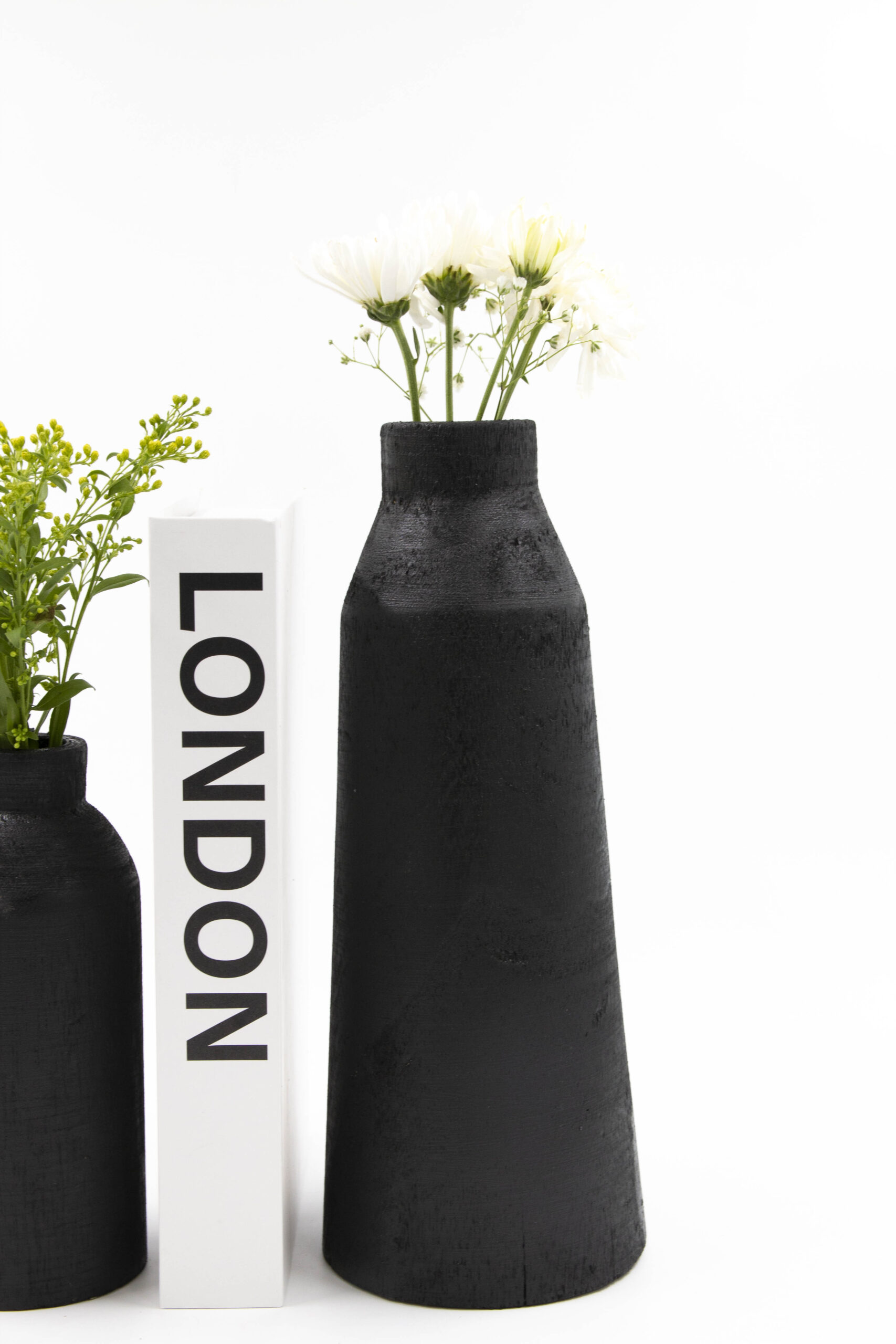 כד עץ מעוצב עם פתח עליון צר, מהמם לזר מינמלי או ענף בודד